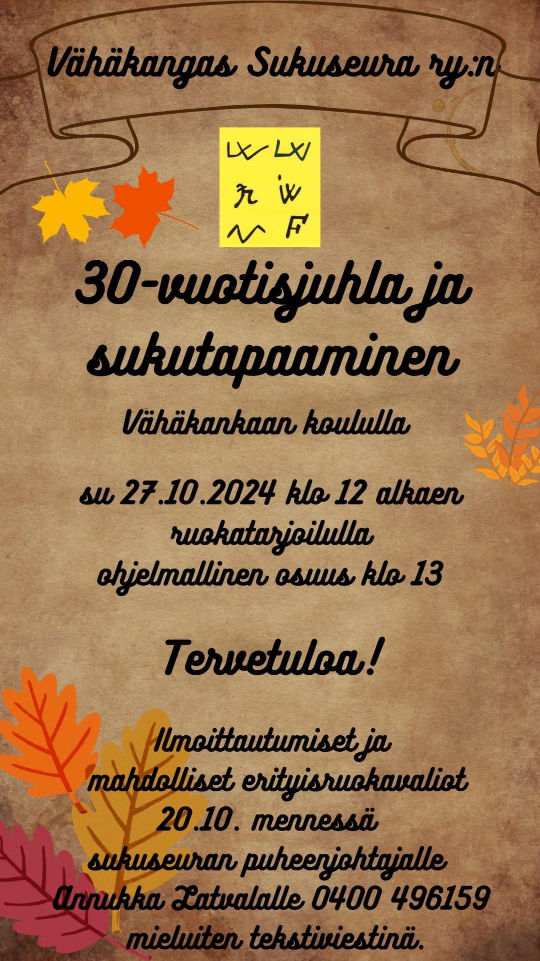 Kutsu sukutapaamiseen, tervetuloa tapahtumaan.